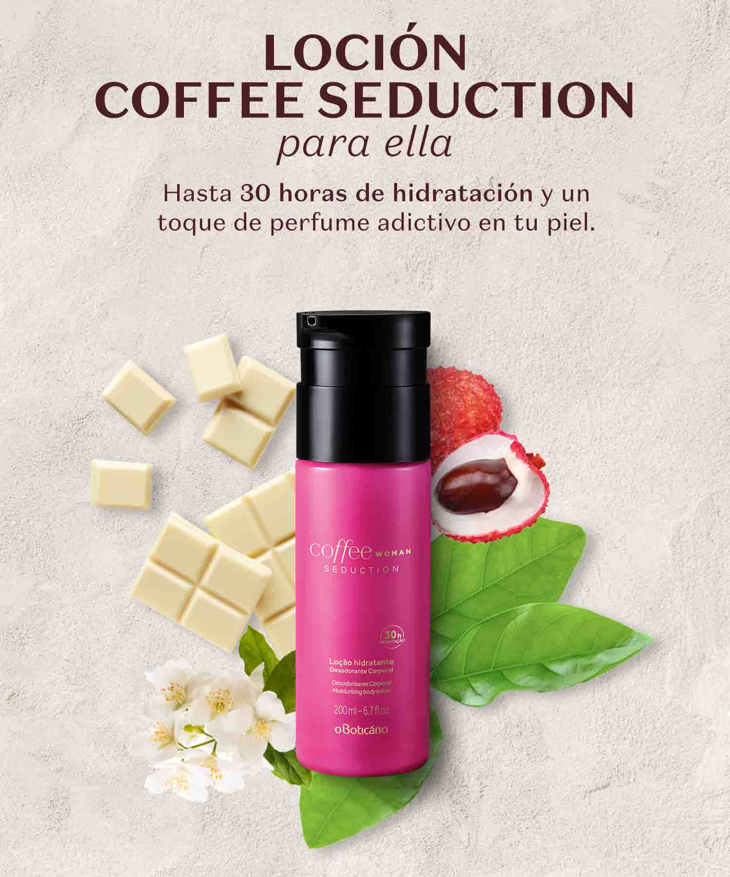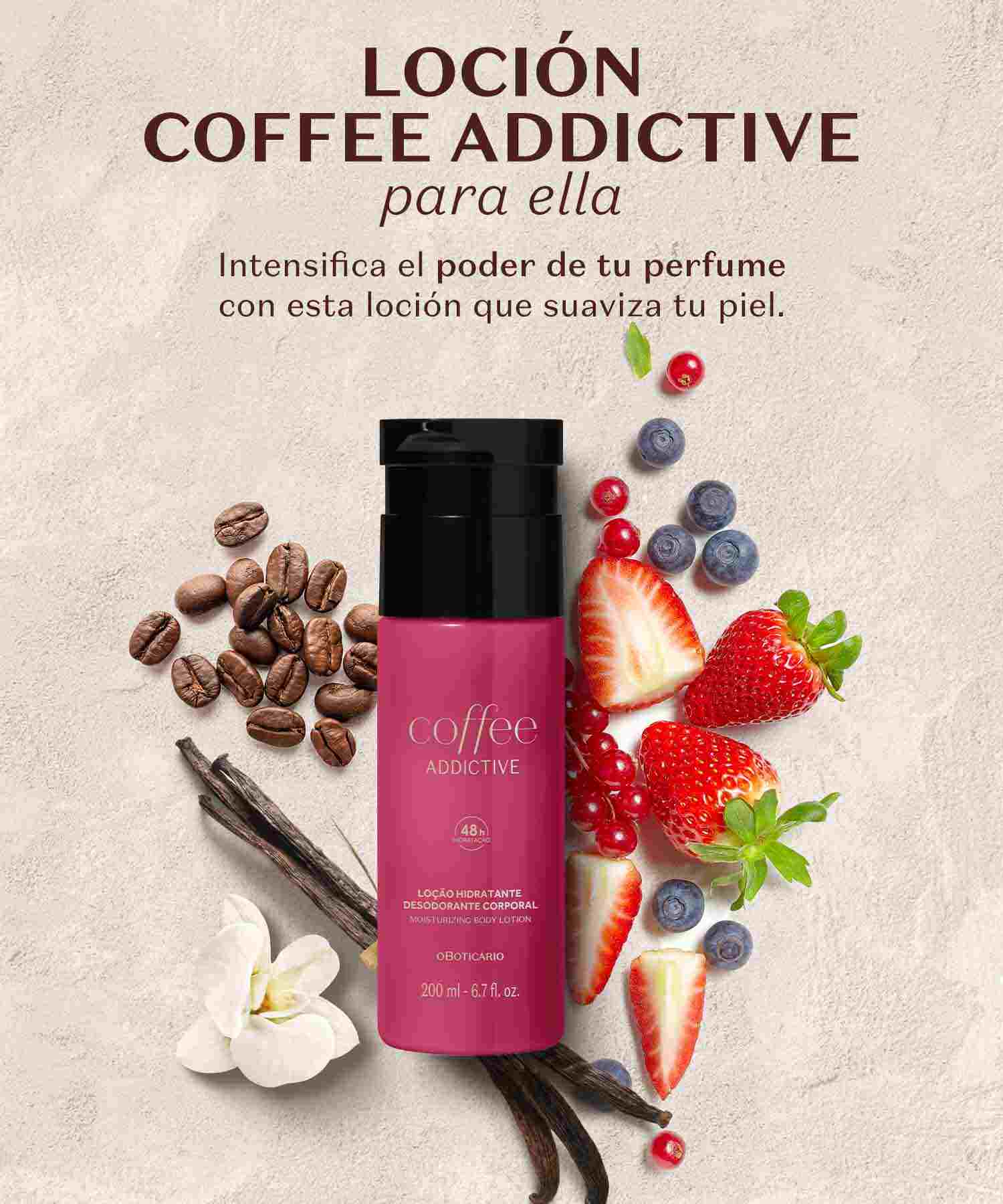 La línea Coffee de O Boticário fusiona el poder envolvente del café con ingredientes sofisticados para crear perfumes y lociones corporales intensas, sensuales y memorables. Cada producto está diseñado para quienes buscan aromas con personalidad, calidez y un toque de seducción tanto para el día como para la noche.
